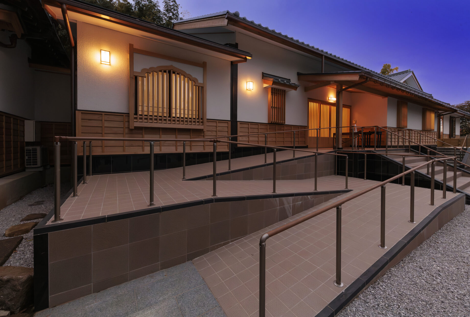 スロープ床面は磁器質タイル150角を使用。