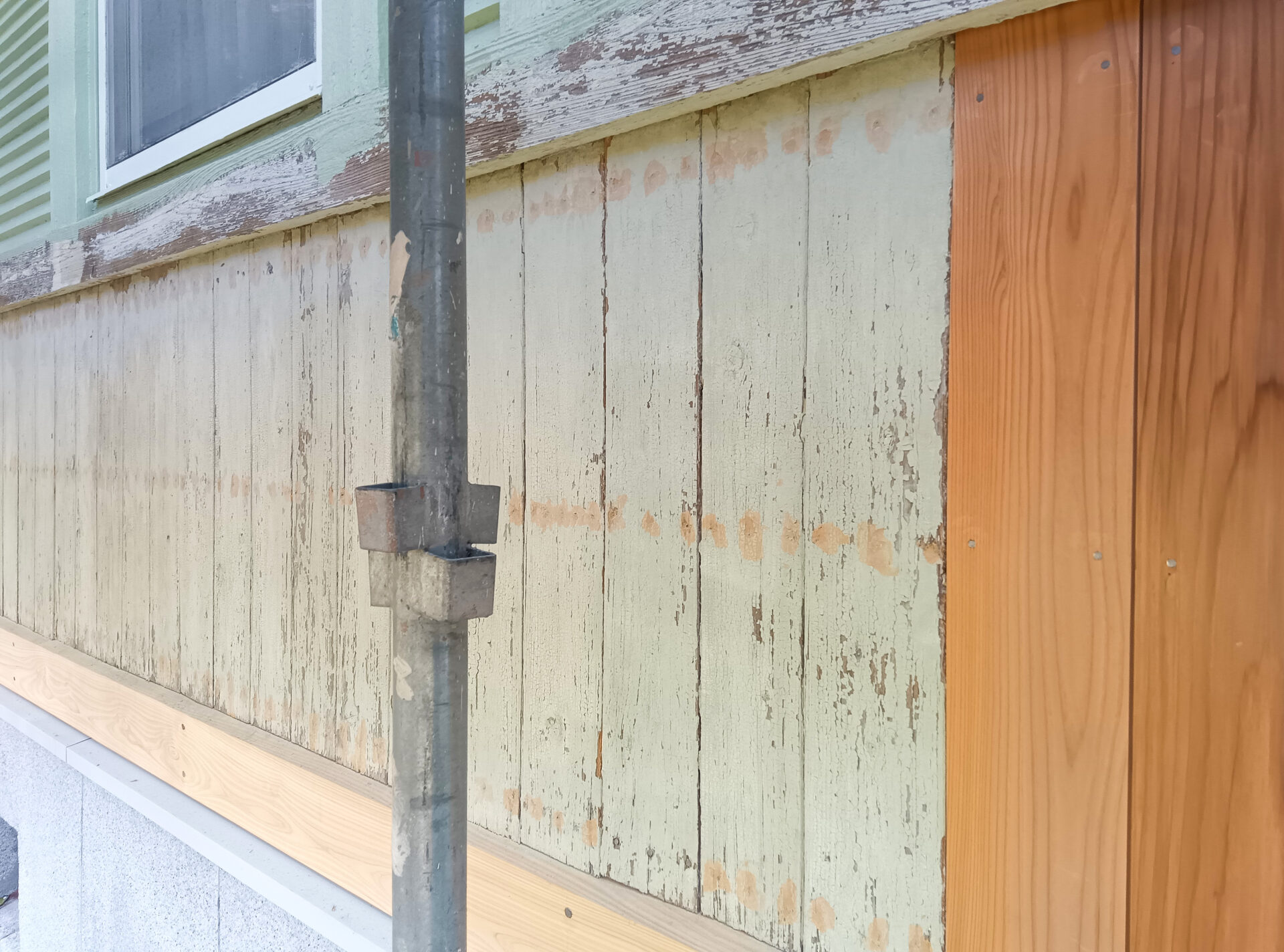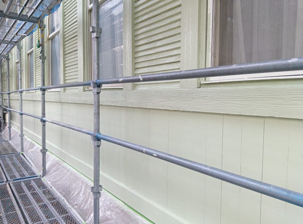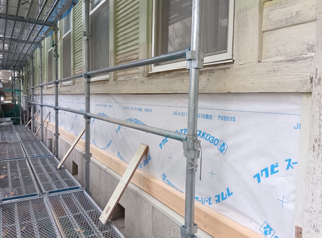 腰板を解体した際、土台の腐食が多くみられたため、その修繕をおこない、建物の屋根、外壁を中心とした改修及び塗装を施工しました。