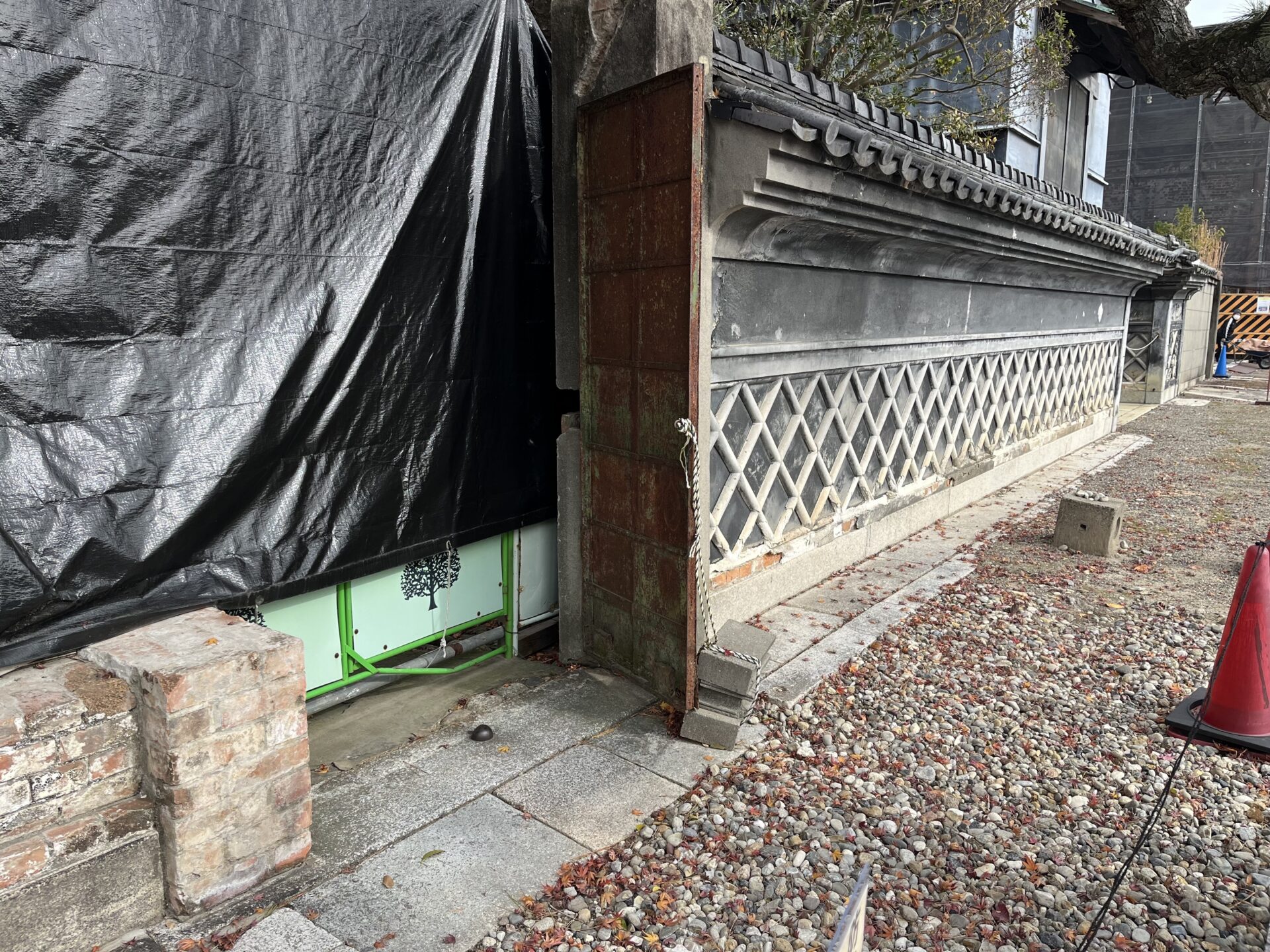 御成門西海鼠塀:木工事、屋根工事、設備取付、素屋根、足場解体撤去