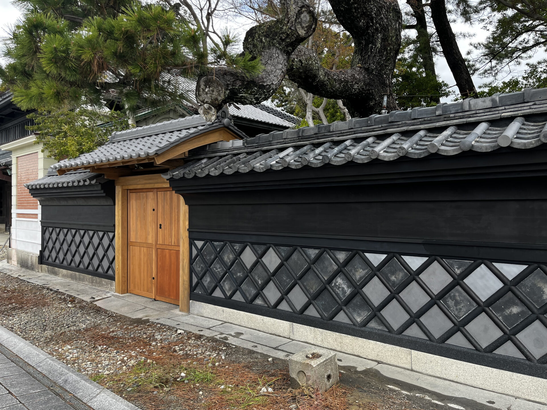 御成門東海鼠塀:煉瓦造/南面本瓦葺き、北面桟瓦葺き